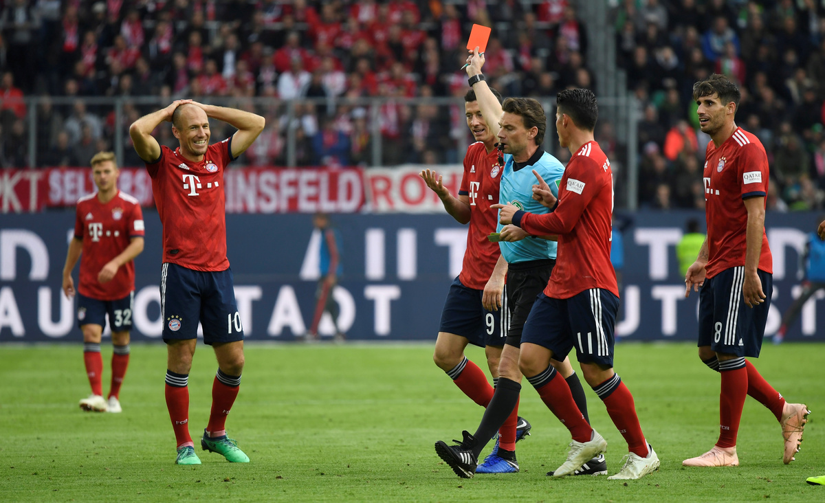 The game looked to be turning for the hosts in the 57th minute when Bayern winger Arjen Robben was sent off after a second booking. It was the Dutchman's first dismissal in more than seven years.