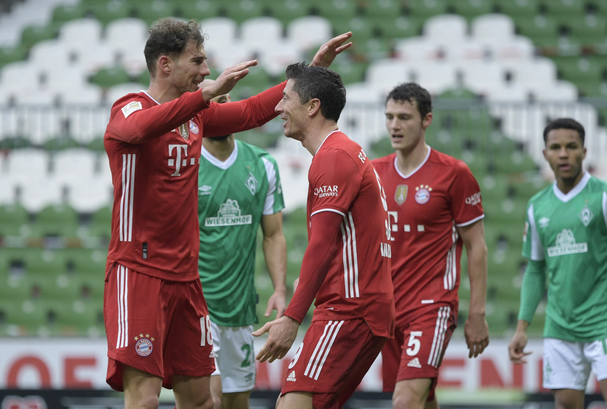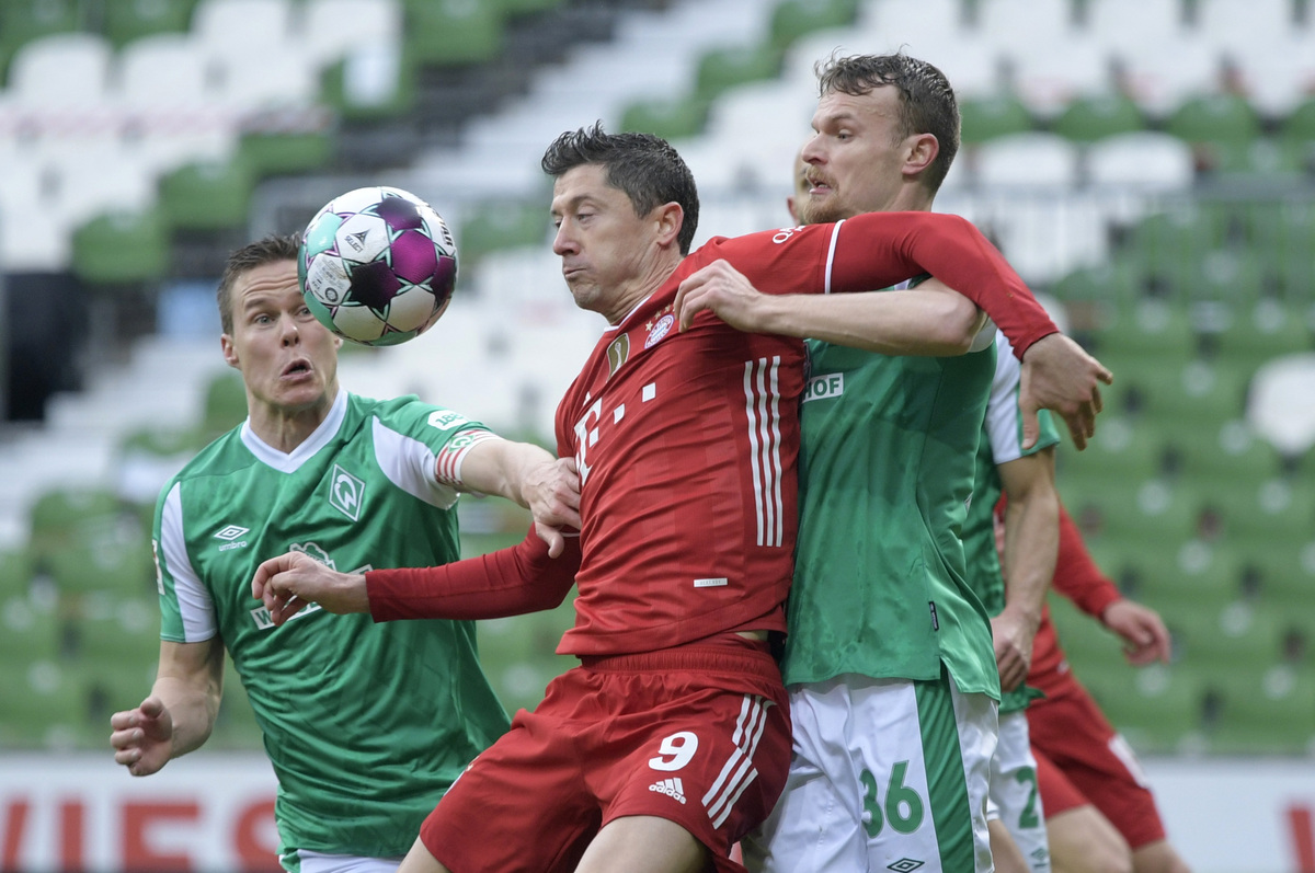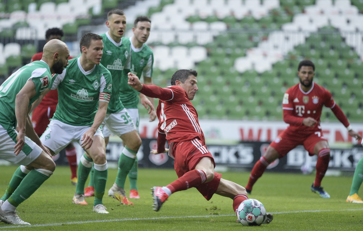 Bayern Munich cruised to a 3-1 victory at Werder Bremen on Saturday with striker Robert Lewandowski climbing to second place in the Bundesliga's all-time scorers list as the champions opened up a five-point lead at the top.