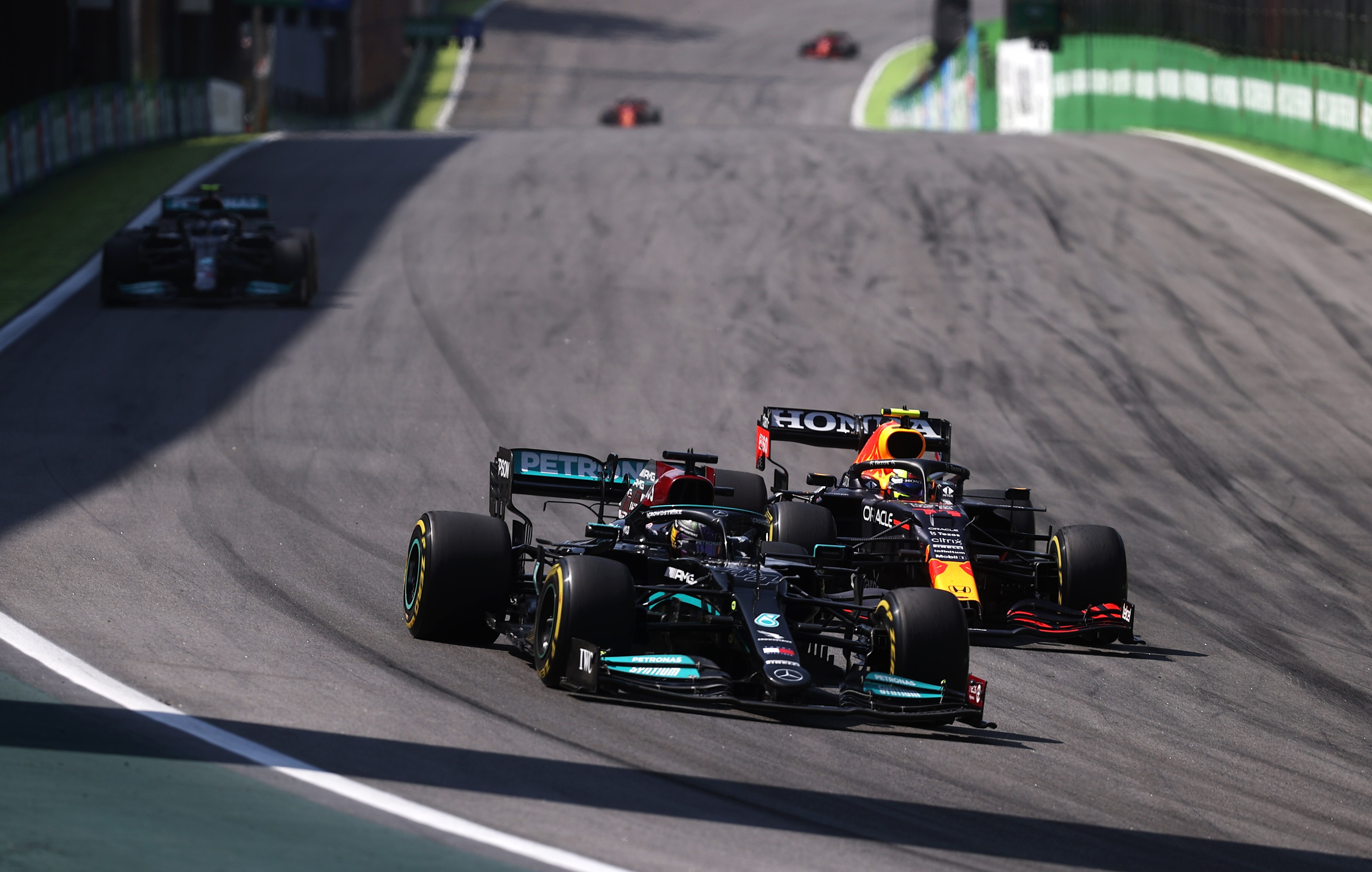 Both had two pit stops during that time as the Brazilian heat took its toll on tyres.