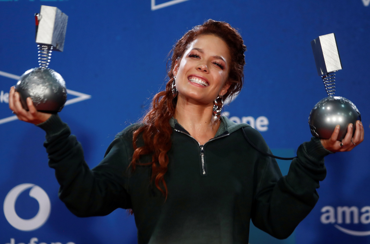 Local girl and international sensation Rosalia gave a powerful performance of "Di Mi Nombre" backed by 52 dancers against a pyramid of red chairs. She won "Best Collaboration" along with J Balvin for their hit "Con Altura ft. El Guincho".