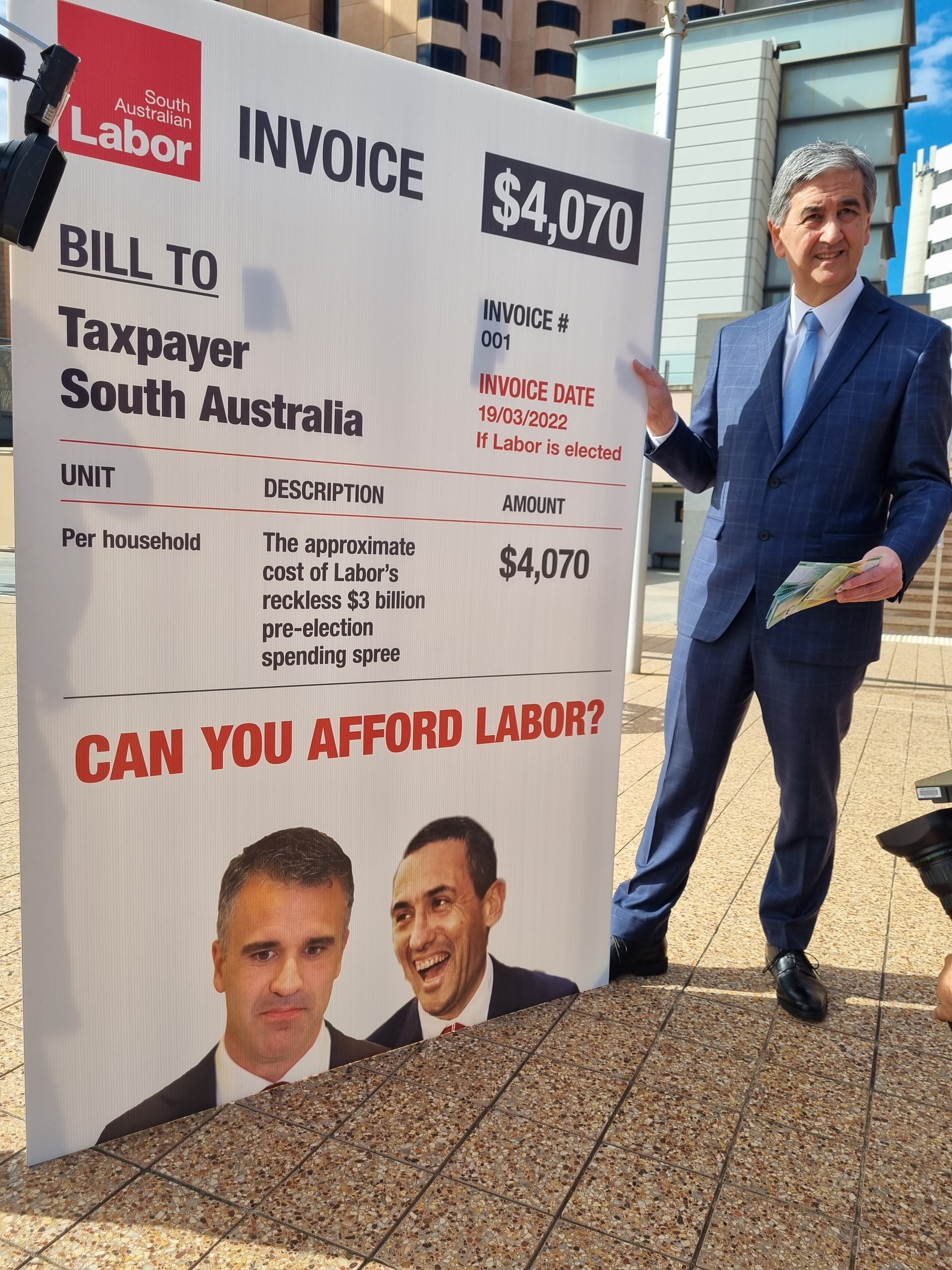 "Mr Malinauskas cannot hide any longer — he must immediately reveal how much extra families and businesses will have to pay in higher taxes, fees and charges to pay for his billions in reckless unfunded promises," he said.