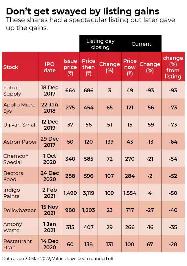 There have been many stocks over the years which gave significantly higher returns to its investors by listing at a price higher than the issue price, only to fall below the threshold after realisation draws.