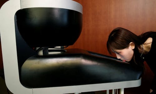 Developed by Homei Miyashita, a professor at Meiji University in Tokyo, and his team of 30 students, TTTV works by using a carousel of 10 flavor canisters that spray simultaneously to simulate the taste of a specific food. This flavor sample is then rolled on a sheet of hygienic film that is transferred over to a TV screen. From there, the viewer can try their hand at licking television.
