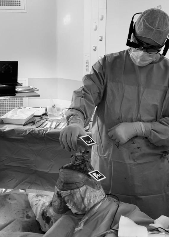 With LiDAR capability embedded in the smart glasses, the QR code placement and prep work is not required, and the dynamic visualization enables significant more capabilities like real time information sharing of a 3D structural holographic map for collaborations, peer advice, and training of medical students and staff. LiDAR also allows for higher quality metrology on socket, balls and pin positions in real-time as the surgery proceeds, leading to more effective outcomes.