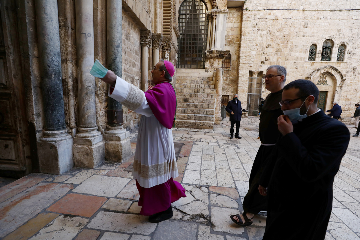 The Church of the Holy Sepulchre, normally packed with pilgrims, was closed to the public last month due to COVID-19, amid similar restrictions affecting sites sacred to Jews and Muslims.
