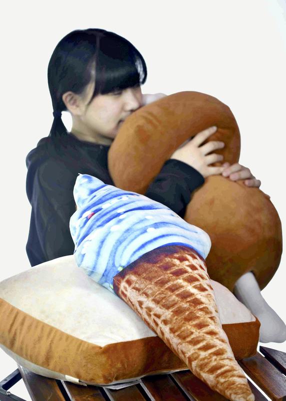 His recommendations included soft, fluffy cushions shaped like such things as a loaf of bread or ice cream. Hugging or just looking at them helps relieve stress.