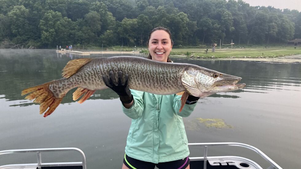 Andrea Gurke caught and released her personal-best muskie on June 16 on a daughter-father outing on Lake Galena. The 43-inch tiger muskie came on a 5 1/2-inch Storm 360GT swimbait on the fourth cast, just after 5:30 a.m., made by Gurke, 26, who works at Illinois Masonic Hospital.