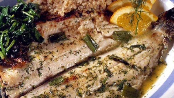 This dish is light and clean, and calls out for wines that are the same. Three selections _ a Champagne, a sauvignon blanc from New Zealand and a gruner veltliner from California _ will complement the braising citrus and still be fresh and light enough not to overpower the fish itself.