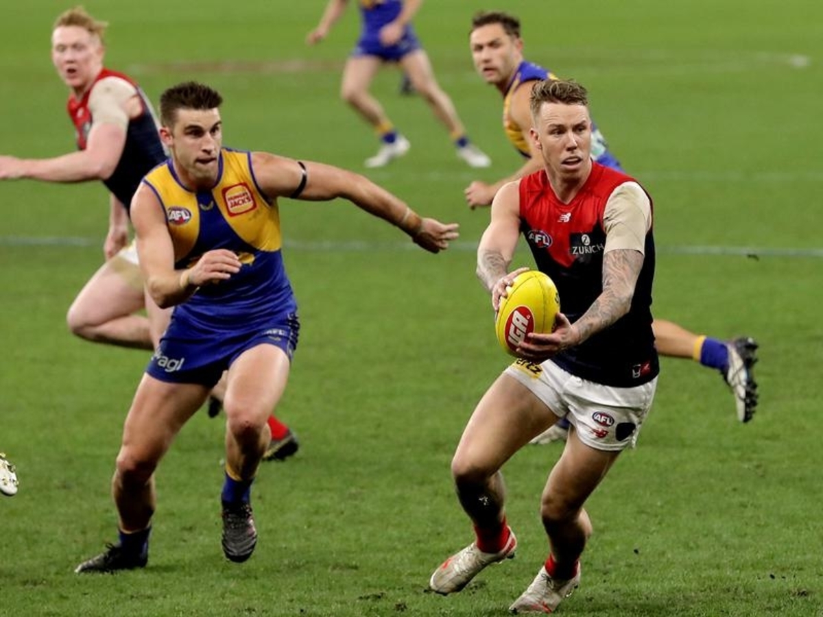 Melbourne have overcome a rare lightning delay and a frenetic West Coast comeback to post a thrilling nine-point AFL win at Optus Stadium.
