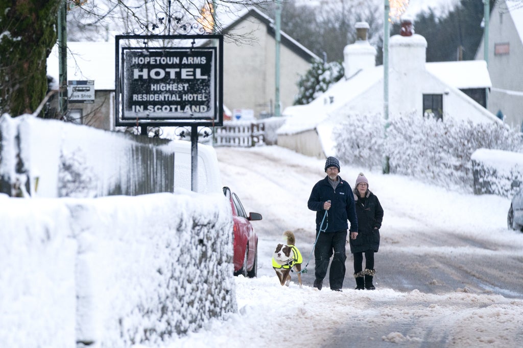 The Met Office issued yellow weather warnings as Storm Barra brought high winds, heavy rain and snow to parts of Scotland on Tuesday.