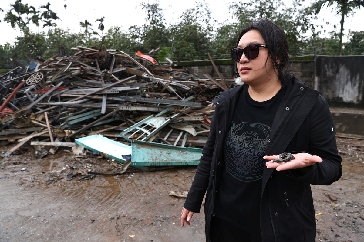 Wang Li-ling, 36, scours dumps, picking up old bits of metal and wires from Taiwan's main electricity supplier to add extra flair to her clothes.