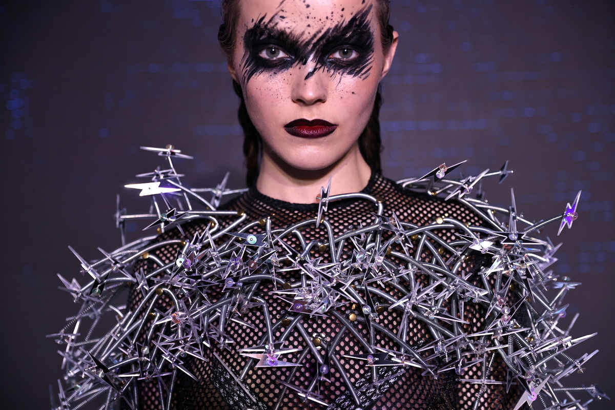 The wires and other materials are stitched onto dresses and other items of clothing, giving them a futuristic feeling, and drawing a warm reception at a fashion show in Taipei on Friday.