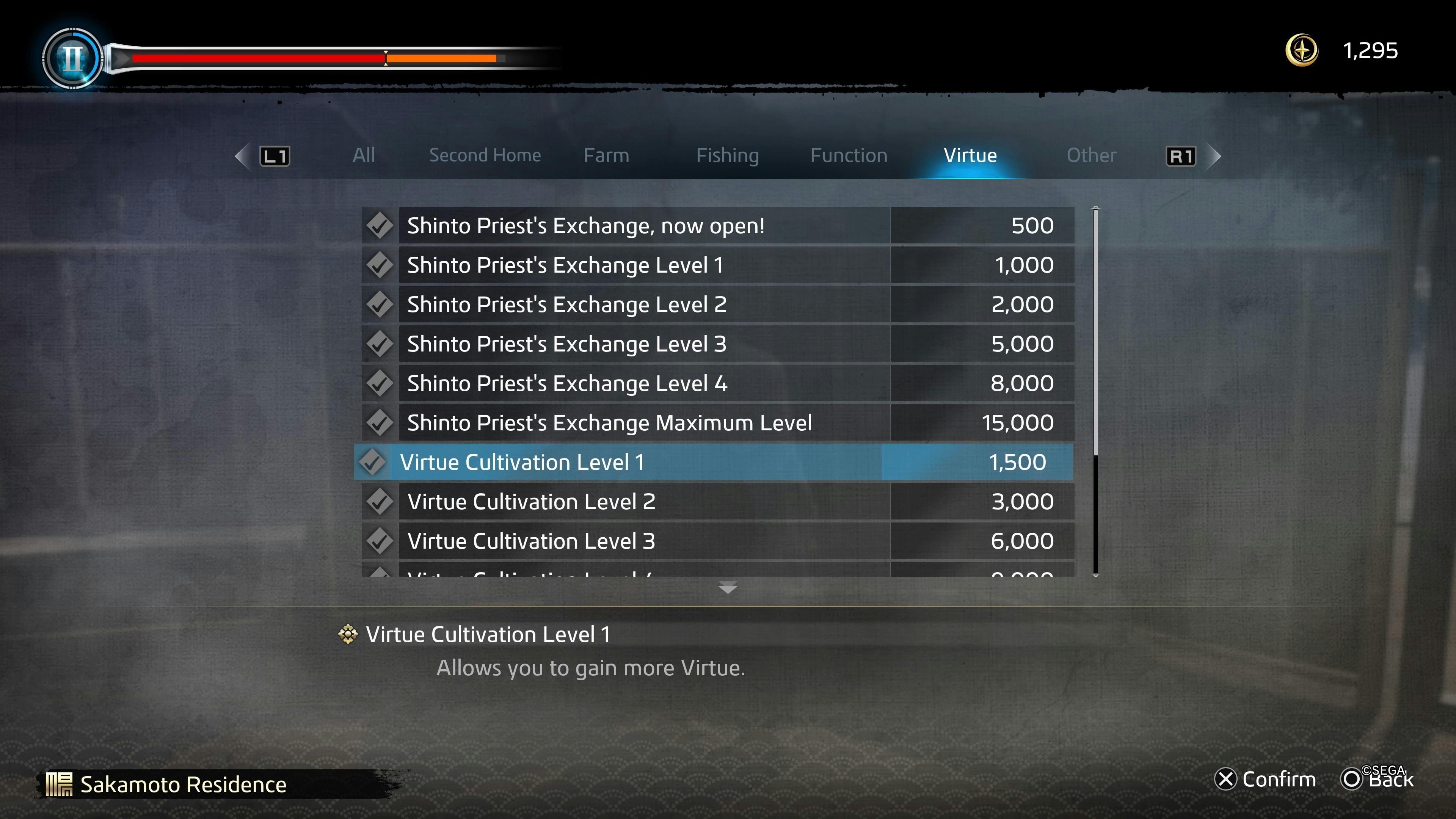 Virtue can be spent to unlock a variety of bonuses, including new features for Another Life, helpful mechanics, new shops, and more perks. The system is designed so that you get Virtue for virtually everything you do in Ishin, but if you’re looking to wrack up a ton of the currency quickly, there are a few easy ways to do so.