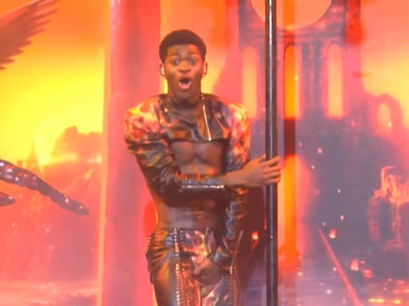 During the performance, Lil Nas X (real name Montero Lamar Hill) is seen gyrating against a pole, wearing tight-fitting leather trousers.