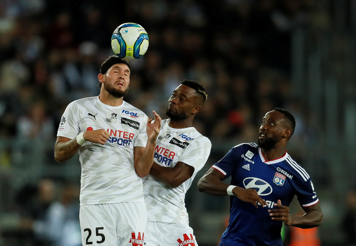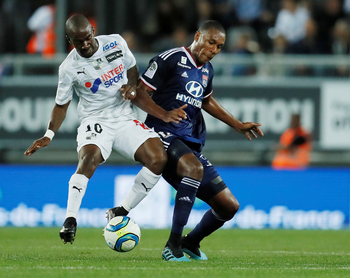 Soccer Football - Ligue 1 - Amiens SC v Olympique Lyonnais - Stade de la Licorne, Amiens, France - September 13, 2019 Olympique Lyonnais' Moussa Dembele in action with Amiens' Aurelien Chedjou REUTERS/Gonzalo FuentesSoccer Football - Ligue 1 - Amiens SC v Olympique Lyonnais - Stade de la Licorne, Amiens, France - September 13, 2019 Olympique Lyonnais' Houssem Aouar in action with Amiens' Juan Ferney Otero REUTERS/Gonzalo FuentesSoccer Football - Ligue 1 - Amiens SC v Olympique Lyonnais - Stade de la Licorne, Amiens, France - September 13, 2019 Olympique Lyonnais' Moussa Dembele in action with Amiens' Jordan Lefort REUTERS/Gonzalo FuentesSoccer Football - Ligue 1 - Amiens SC v Olympique Lyonnais - Stade de la Licorne, Amiens, France - September 13, 2019 Olympique Lyonnais' Marcelo in action with Amiens' Gael Kakuta REUTERS/Gonzalo FuentesSoccer Football - Ligue 1 - Amiens SC v Olympique Lyonnais - Stade de la Licorne, Amiens, France - September 13, 2019 Amiens' Aurelien Chedjou in action with Olympique Lyonnais' Houssem Aouar REUTERS/Gonzalo FuentesSoccer Football - Ligue 1 - Amiens SC v Olympique Lyonnais - Stade de la Licorne, Amiens, France - September 13, 2019 Amiens' Christophe Jallet celebrates scoring their first goal with team mates REUTERS/Gonzalo Fuentes