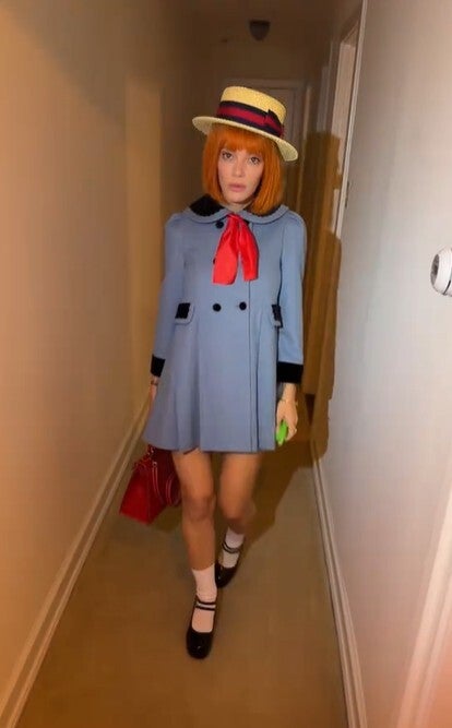 To complete the look, Allen’s costume consisted of a blue collared pea coat with a red neckerchief, a straw hat, Mary Jane shoes and a bright orange wig.