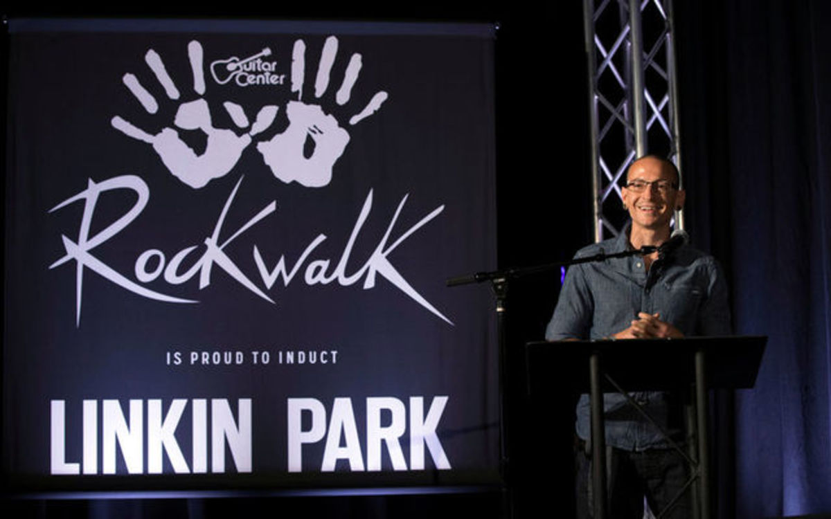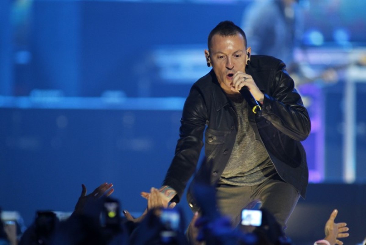 FILE PHOTO: Lead vocalist of rock band Linkin Park Chester Bennington speaks before the band is inducted into Guitar Center's RockWalk in Los Angeles, California June 18, 2014. REUTERS/Mario Anzuoni/File PhotoFILE PHOTO: Lead vocalist of Linkin Park Chester Bennington performs with guitarist Slash at 9th annual MusiCares MAP Fund Benefit concert in Los Angeles, California May 30, 2013. REUTERS/Mario Anzuoni/File PhotoFILE PHOTO: Members of rock band Linkin Park (L-R) Mike Shinoda, Rob Bourdon, Joe Hahn, Brad Delson, Dave Farrell and Chester Bennington put their handprints in cement as they are inducted into Guitar Center's RockWalk in Los Angeles, California June 18, 2014. REUTERS/Mario Anzuoni/File PhotoFILE PHOTO: Lead vocalist of rock band Linkin Park Chester Bennington answers a question after the band was inducted into Guitar Center's RockWalk in Los Angeles, California June 18, 2014. REUTERS/Mario Anzuoni/File Photo
