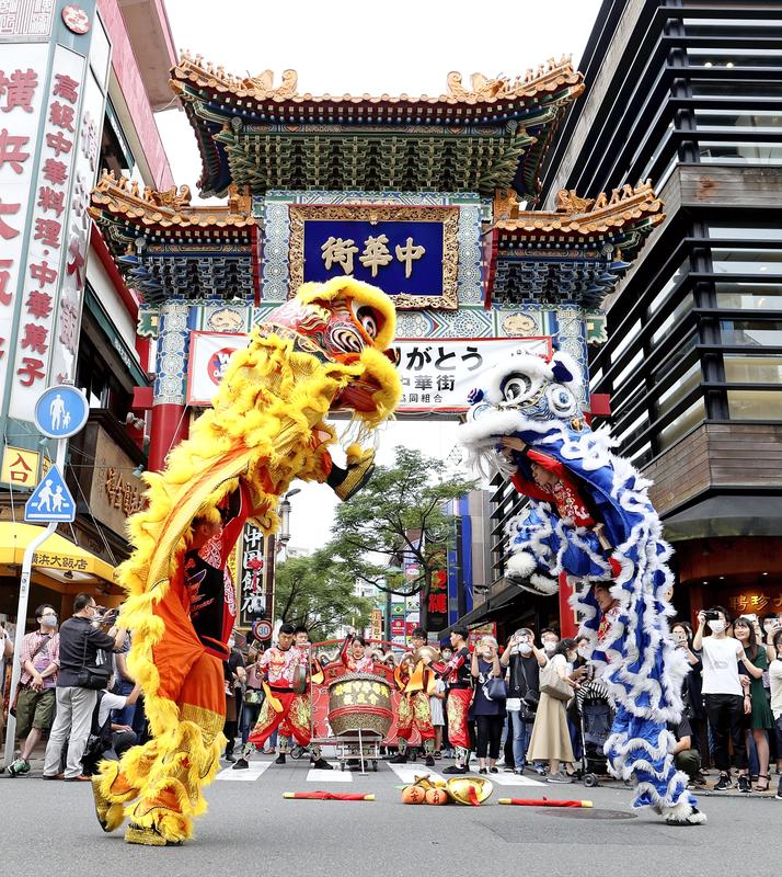 A Chinese lion dance performed as a prayer for an end to the novel coronavirus pandemic entertained visitors in Yokohama's Chinatown district Sunday.