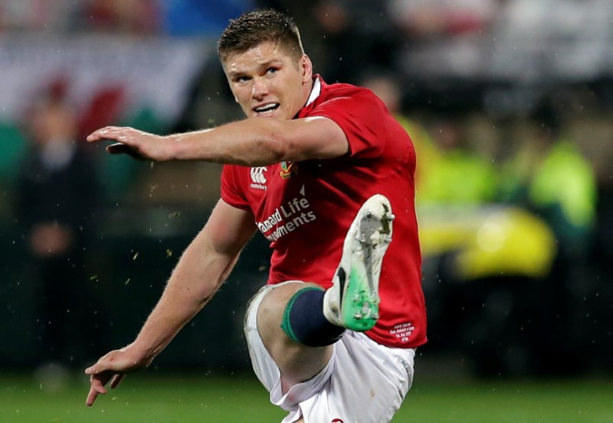 Rugby Union - New Zealand All Blacks v British and Irish Lions - Lions Tour - Westpac Stadium, Wellington, New Zealand - July 1, 2017 Lions' Owen Farrell takes a penalty kick. REUTERS/Anthony Phelps