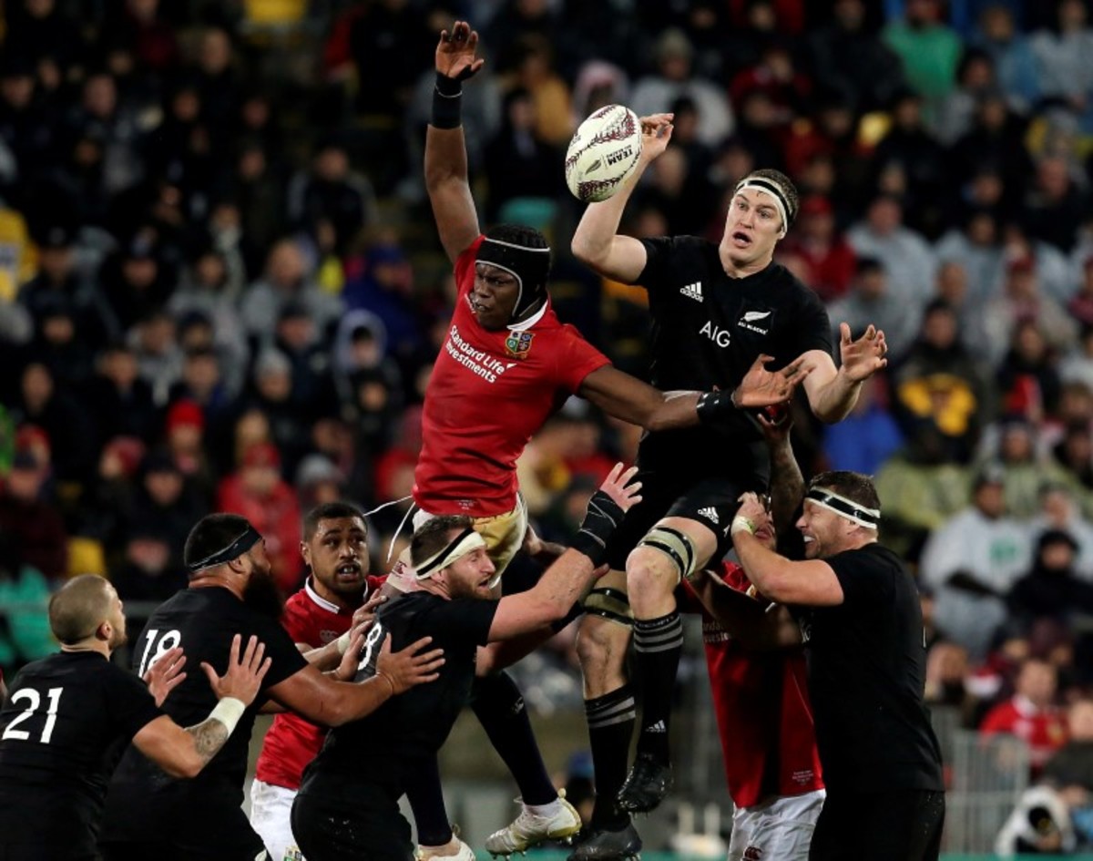 Rugby Union - New Zealand All Blacks v British and Irish Lions - Lions Tour - Westpac Stadium, Wellington, New Zealand - July 1, 2017 Lions' Maro Itoje and New Zealand's Brodie Retallick jump for a line out. REUTERS/Anthony PhelpsRugby Union - New Zealand All Blacks v British and Irish Lions - Lions Tour - Westpac Stadium, Wellington, New Zealand - July 1, 2017 New Zealand's TJ Perenara argues with the Lions. REUTERS/David GrayRugby Union - New Zealand All Blacks v British and Irish Lions - Lions Tour - Westpac Stadium, Wellington, New Zealand - July 1, 2017 New Zealand's Sonny Bill Williams is shown the red card. REUTERS/Anthony PhelpsRugby Union - New Zealand All Blacks v British and Irish Lions - Lions Tour - Westpac Stadium, Wellington, New Zealand - July 1, 2017 New Zealand's Sonny Bill Williams walks off after being shown the red card. REUTERS/Anthony PhelpsRugby Union - New Zealand All Blacks v British and Irish Lions - Lions Tour - Westpac Stadium, Wellington, New Zealand - July 1, 2017 New Zealand's Sonny Bill Williams tackles Lions' Taulupe Faletau. REUTERS/Anthony PhelpsRugby Union - New Zealand All Blacks v British and Irish Lions - Lions Tour - Westpac Stadium, Wellington, New Zealand - July 1, 2017 Lions' Johnny Sexton kicks. REUTERS/Anthony PhelpsRugby Union - New Zealand All Blacks v British and Irish Lions - Lions Tour - Westpac Stadium, Wellington, New Zealand - July 1, 2017 Lions' Jonathan Davies in action. REUTERS/David GrayRugby Union - New Zealand All Blacks v British and Irish Lions - Lions Tour - Westpac Stadium, Wellington, New Zealand - July 1, 2017. Lions watch as New Zealand performs the haka before the match. REUTERS/Anthony PhelpsRugby Union - New Zealand All Blacks v British and Irish Lions - Lions Tour - Westpac Stadium, Wellington, New Zealand - July 1, 2017 Lions watch as New Zealand performs the haka before the match. REUTERS/Anthony PhelpsRugby Union - New Zealand All Blacks v British and Irish Lions - Lions Tour - Westpac Stadium, Wellington, New Zealand - July 1, 2017 Lions fans react before the match. REUTERS/Anthony Phelps