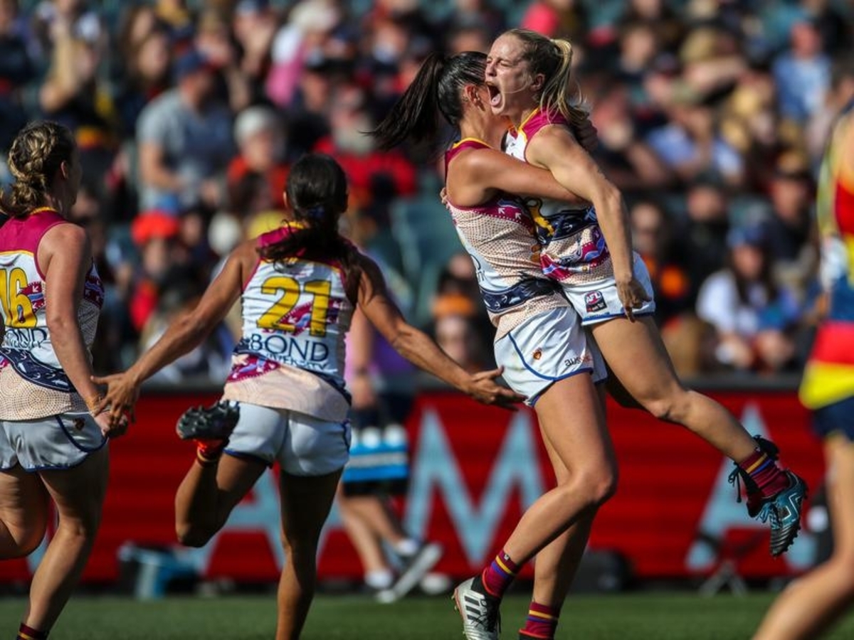 Brisbane are AFLW premiers for the first time after Kate Lutkins starred in a superb defensive effort that underpinned the Lions' stunning 18-point upset win over the Crows at Adelaide Oval.