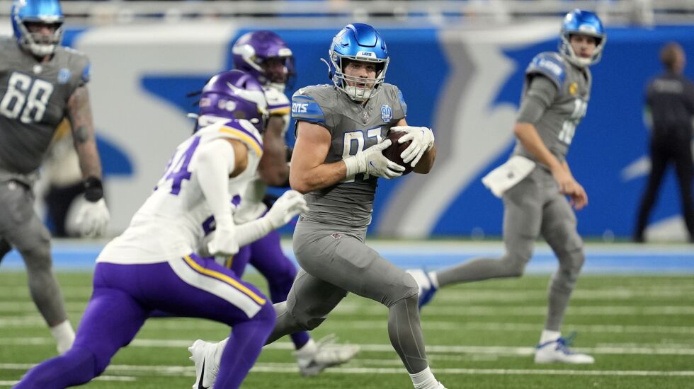 DETROIT — Sam LaPorta had a 2-yard touchdown catch midway through the first quarter but later limped off the field with a knee injury, an ominous development for the NFC North champion Detroit Lions as they closed out the regular season with a 30-20 win over the Minnesota Vikings on Sunday.