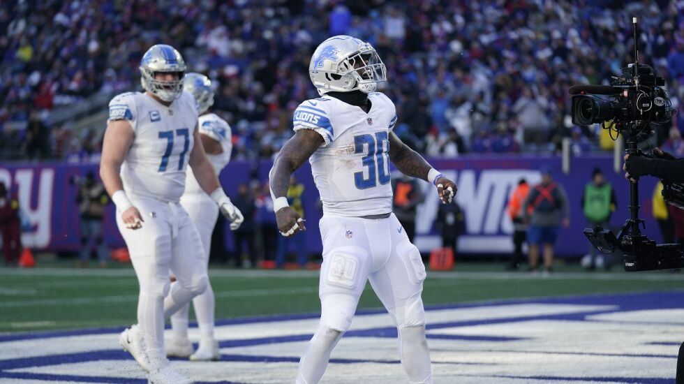 Williams ran for a 4-yard TD and two 1-yard scores and the Lions’ much-maligned run defense shut down NFL leading rusher Saquon Barkley and forced three turnovers on a cold, blustery afternoon at MetLife Stadium.