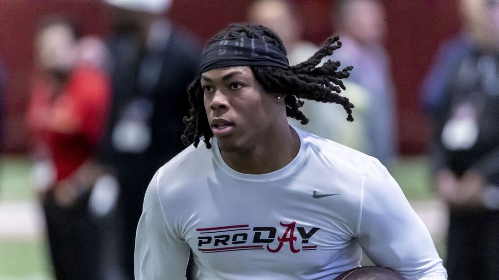 Detroit traded down to take Alabama running back Jahmyr Gibbs No. 12 overall on Thursday night, giving up its first pick and a third-rounder to Arizona for a first-round selection and the 34th spot overall.