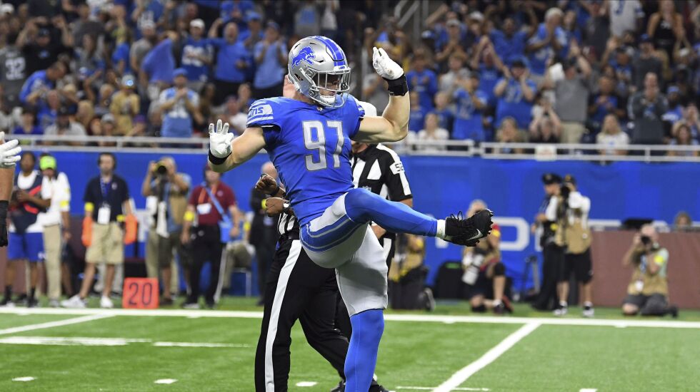 The No. 2 pick in the NFL draft, Aidan Hutchinson, had three sacks in the first half to help the Lions (1-1) lead 22-0 at halftime. Will Harris had an interception in the second half to stunt the Commanders (1-1) as they tried to rally.
