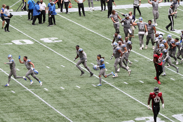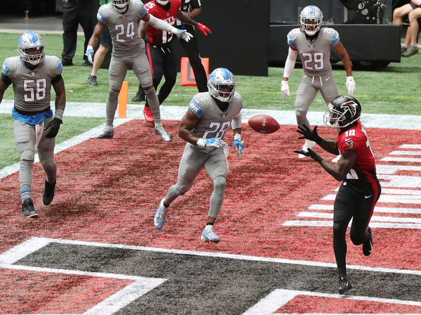 The Lions managed to find their footing first as quarterback Matthew Stafford started the team's second possession with a pair of chunk gains to tight end T.J. Hockenson and wide receiver Marvin Jones. Handing the ball off to rookie runner D'Andre Swift on three straight snaps netted 24 more yards and put the Lions into the red zone where a Falcons' mistake set up the game's first touchdown.