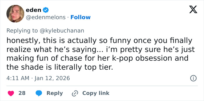 “Ooh so he is imitating her, good actor… Now it makes sense that he was talking about ‘KPop Demon Hunters,’” wrote one social media user