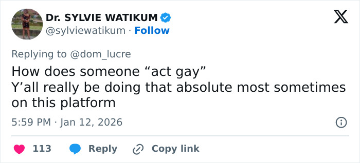 “Why is he acting a little gay?” one person wrote, while another commented, “He’s definitely mimicking a gay person or something lol.”