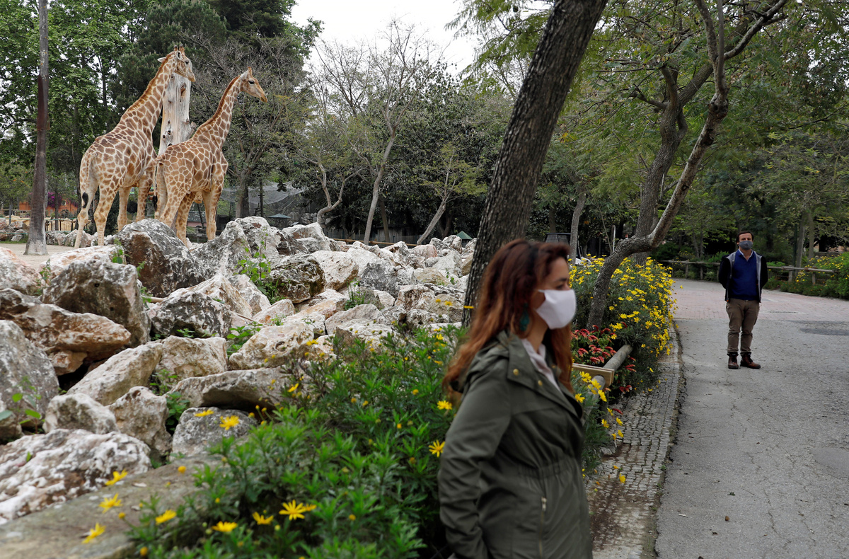 Wearing a mask and other protective gear, a zookeeper at Portugal's biggest zoo feeds a mob of energetic meerkats, including a few newborns - but the usual excited onlookers are nowhere to be seen.
