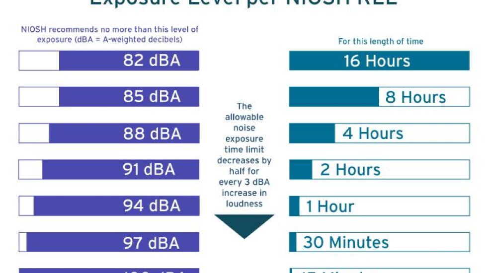- “If it sounds too loud, it probably is,” Hefferly said. “If you must shout to be heard by someone next to you, then it’s probably too loud.”