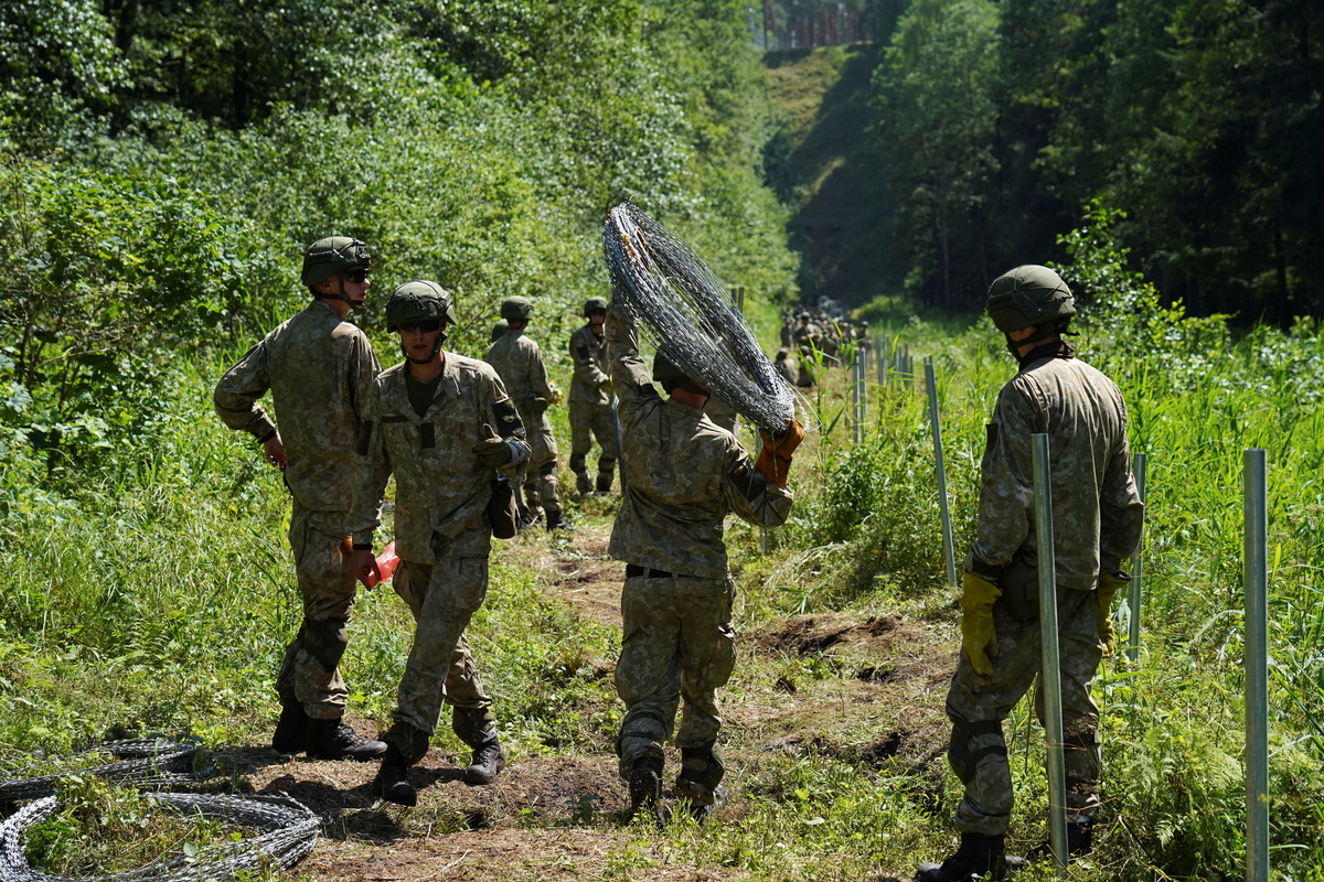 Lithuania began building a 550-km (320-mile) razor wire barrier on its border with Belarus on Friday after accusing Belarusian authorities of flying in migrants from abroad to send illegally into the European Union.