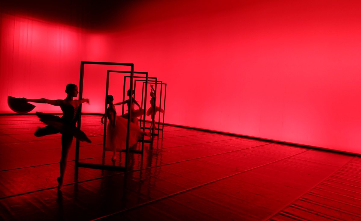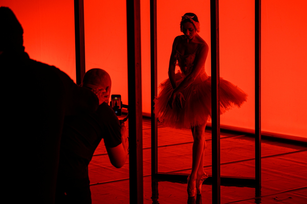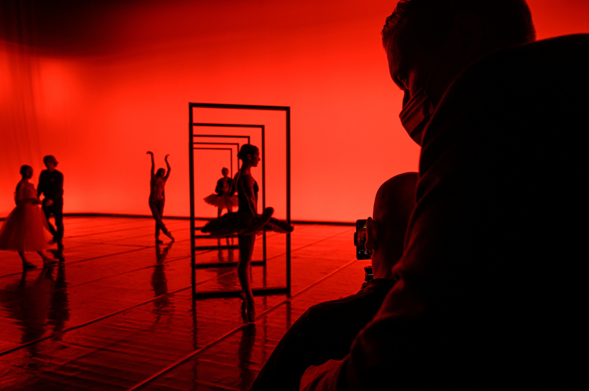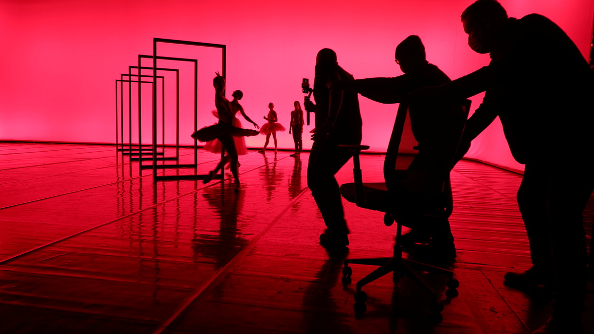 On Thursday, five ballerinas in tutus danced on the main national opera stage in front of around 1,000 empty seats, filming a TikTok "silhouette" video which involved dancing through five standalone door frames.