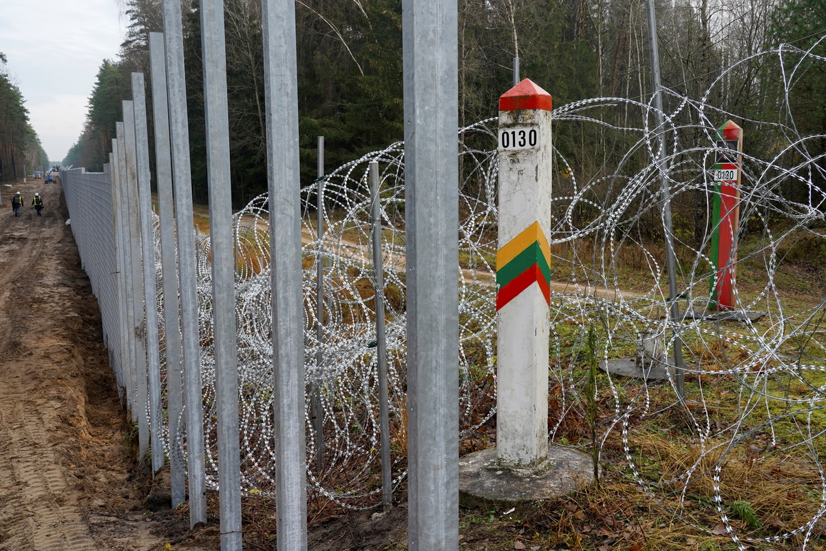 All three EU countries have put stretches of razor wire on the border to stop the migrants. Last week Lithuania began putting up the first stretches of the 3.4-metre (11-foot) high steel fence, topped with 0.6 metres (2 feet) of razor wire.