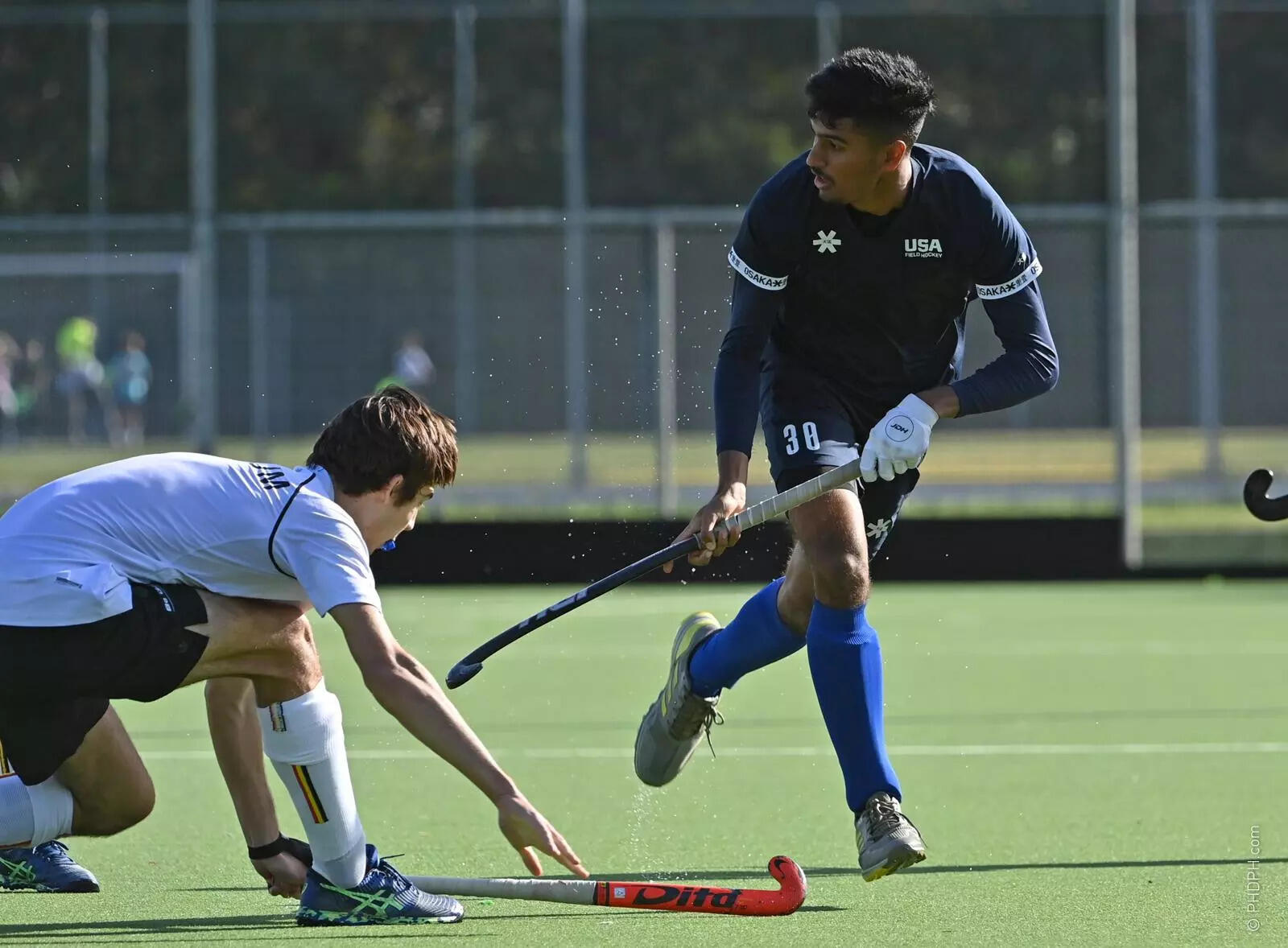 Mention hockey to American sports fans, and most of them would think of ice hockey. They like to call hockey on artificial grass 'field hockey'. `