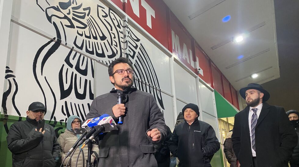 Malagón spoke at a news conference outside the mall located at 26th and Albany streets, near the iconic “Bienvenidos a Little Village” arch. On hand were dozens of other vendors, supporters and local Ald. Byron Sigcho-López (25th).