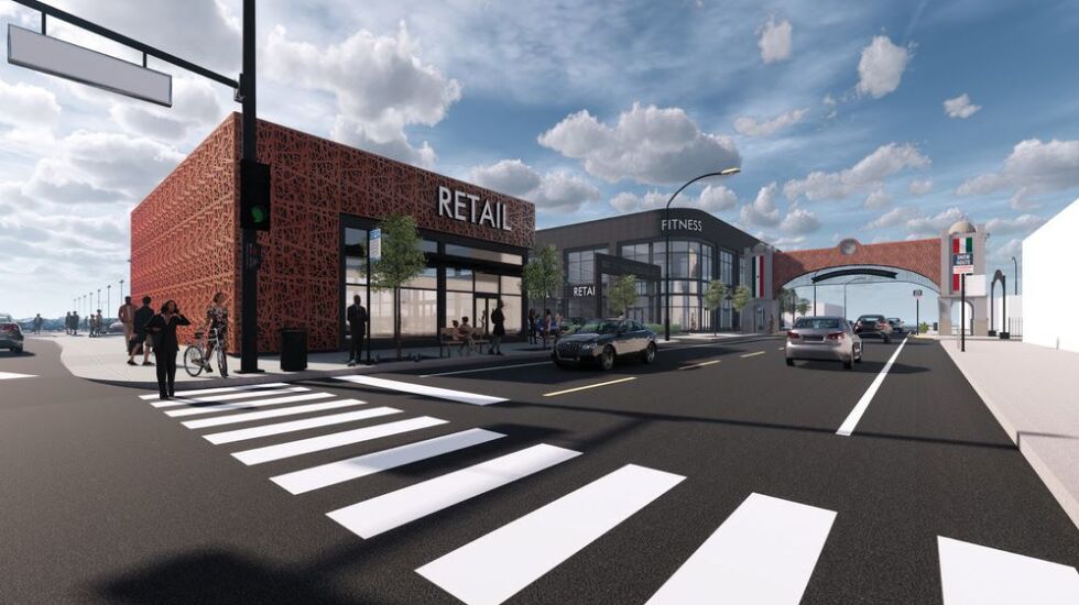 The listing from Mid-America Real Estate Corp., a broker that works with national big box stores, includes renderings of what the new development could look like and lists five spaces available for rent, ranging from 20,000- to 60,000-square-feet.