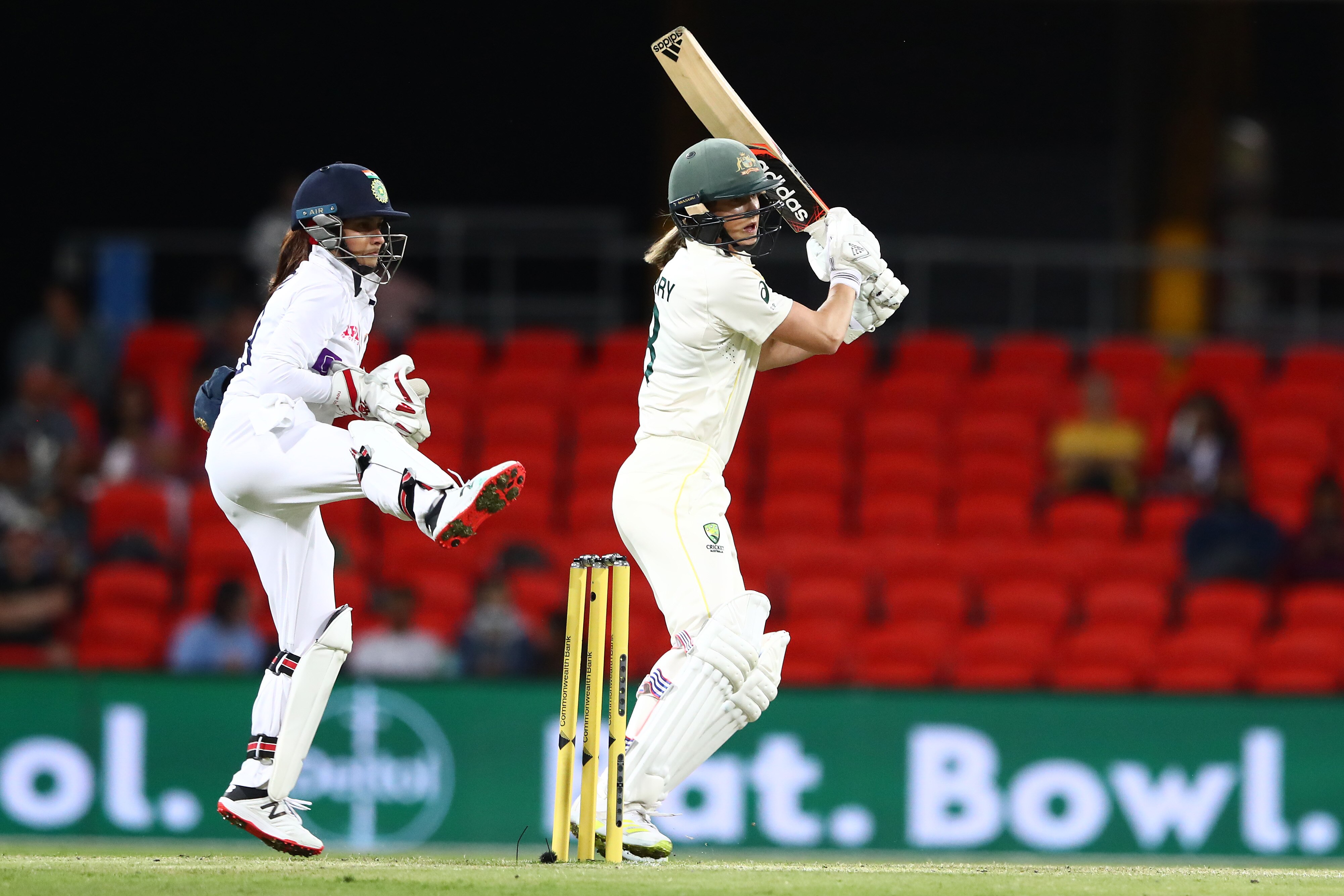 Earlier, Perry (2-76) and teenage debutante Stella Campbell (2-47) were the only wicket-takers for Australia as India took their overnight score from 5-276 to 8-377 before declaring.