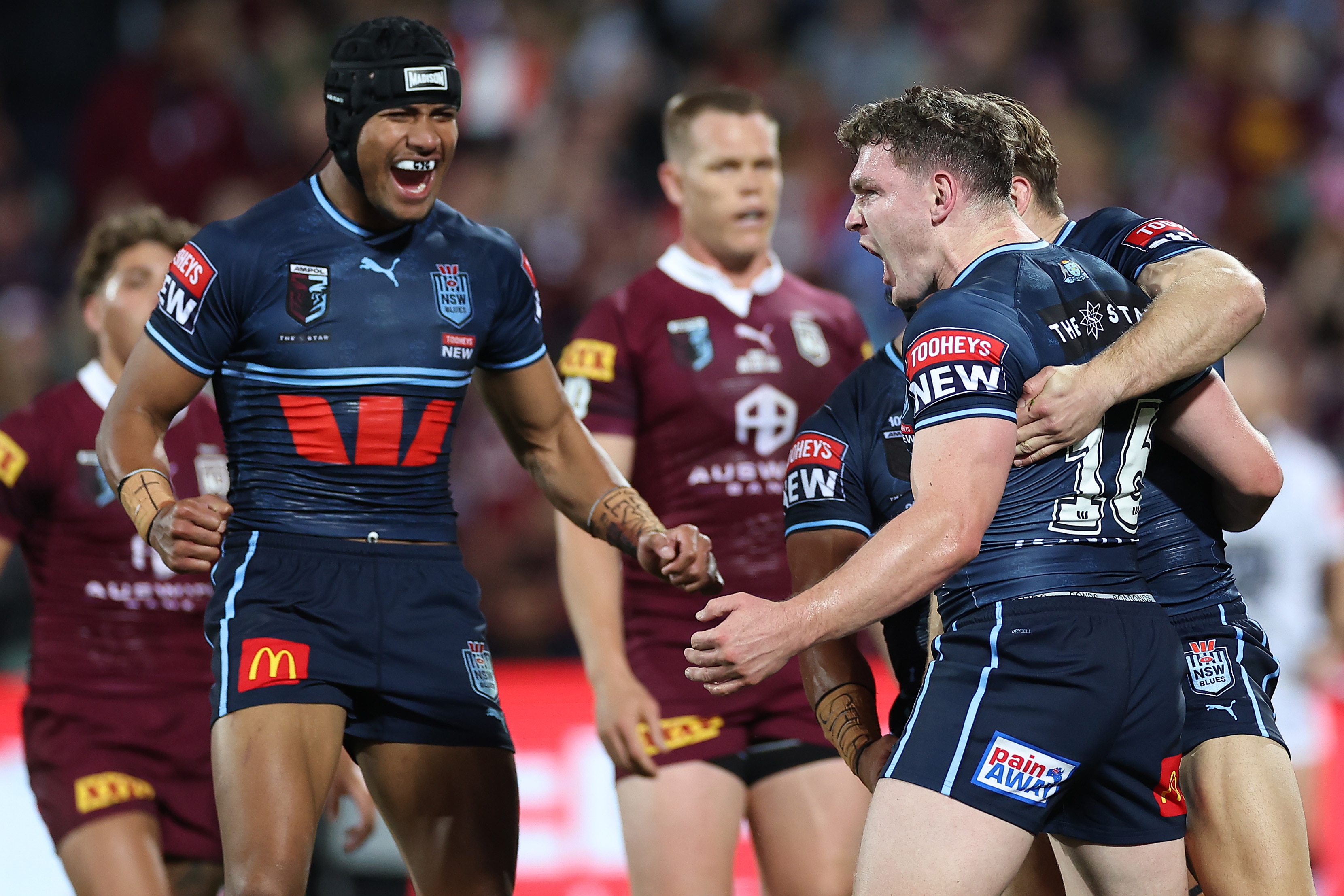 The Maroons repeated the dose again, when Blues back rower Tyson Frizell was denied a try by the bunker after appearing to crash over for a four-pointer.