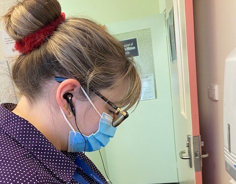 The workshop simulates the experience of voice hearers — people who perceive sounds without any auditory stimulus — by giving staff activities to carry out while wearing headphones that are playing voices.
