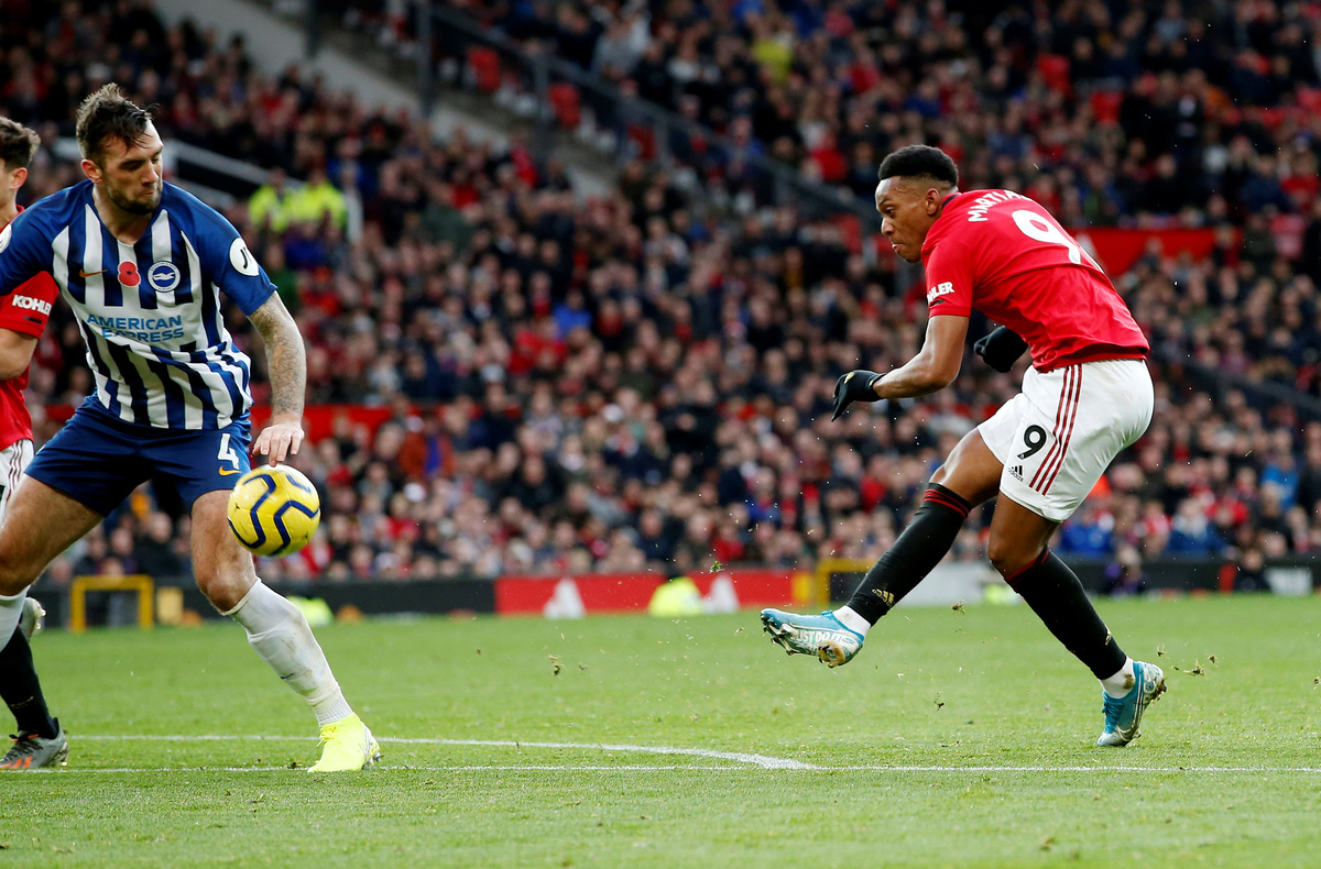 The home side benefited from a fine individual display by Anthony Martial, who set up two goals and ran tirelessly at Brighton's defenders.
