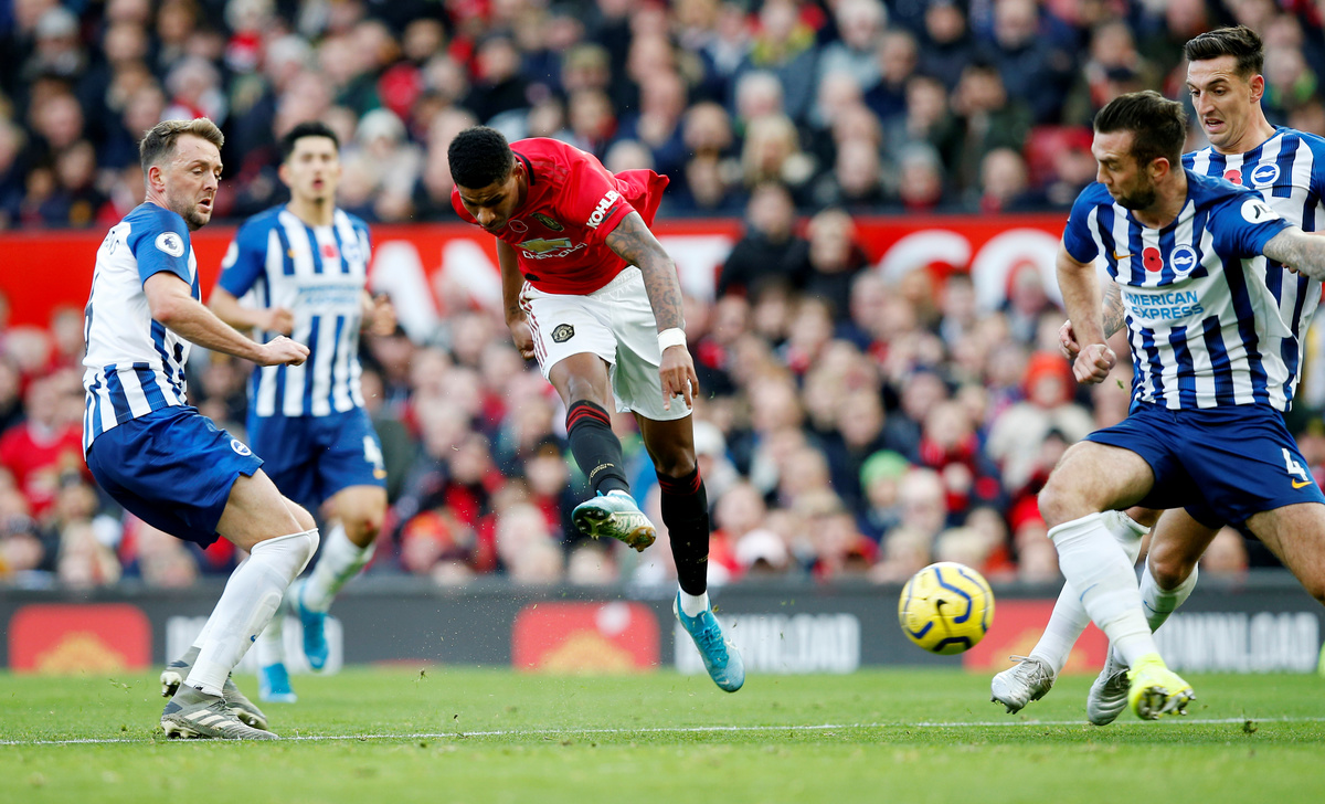 Lewis Dunk pulled one back for Brighton in the 64th minute with a close-range header, but Rashford restored United's two-goal advantage two minutes later when he blasted in a shot from 12 metres off the underside of the bar.