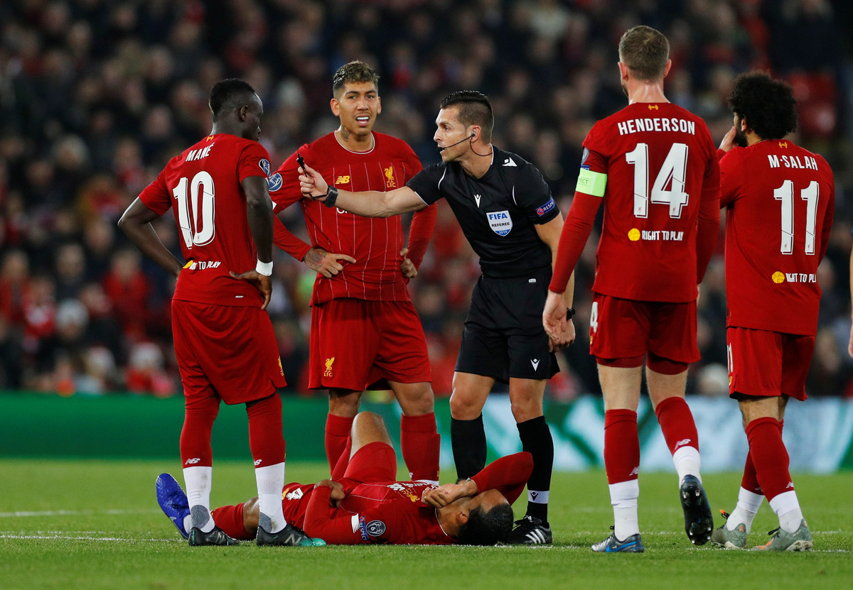 The night began badly with Liverpool's Brazilian holding midfielder Fabinho limping off in the 19th minute with what appeared to be an ankle injury.