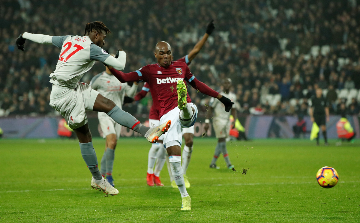 Still, Liverpool could have gone ahead in the 24th minute when Andy Robertson lifted a chance over Lukasz Fabianski before Issa Diop got back to clear. Robertson's fizzing cross narrowly avoided Origi's outstretched boot.