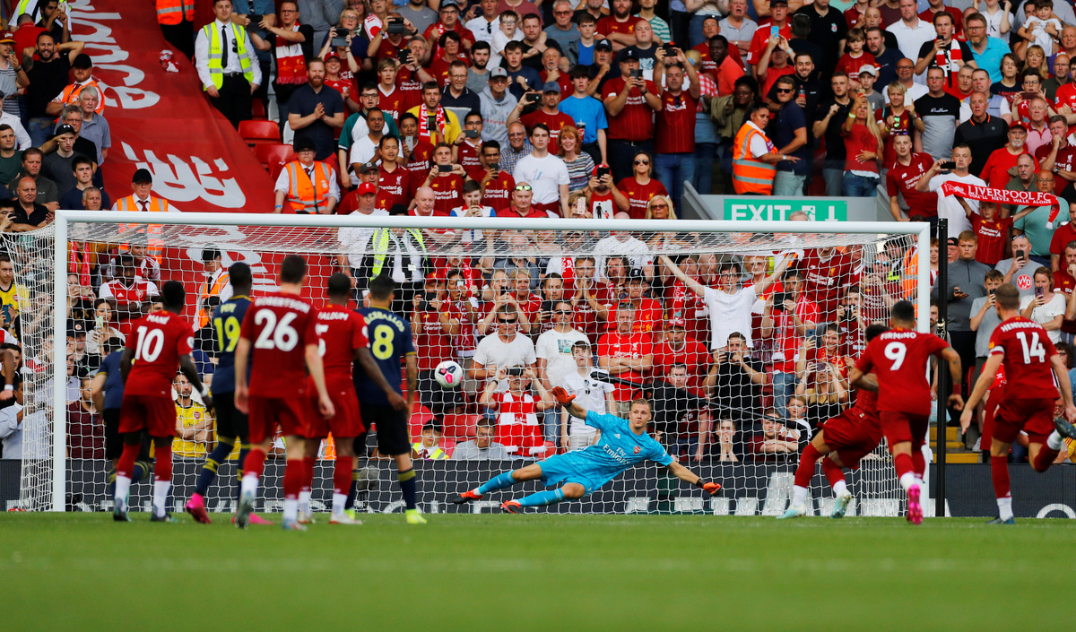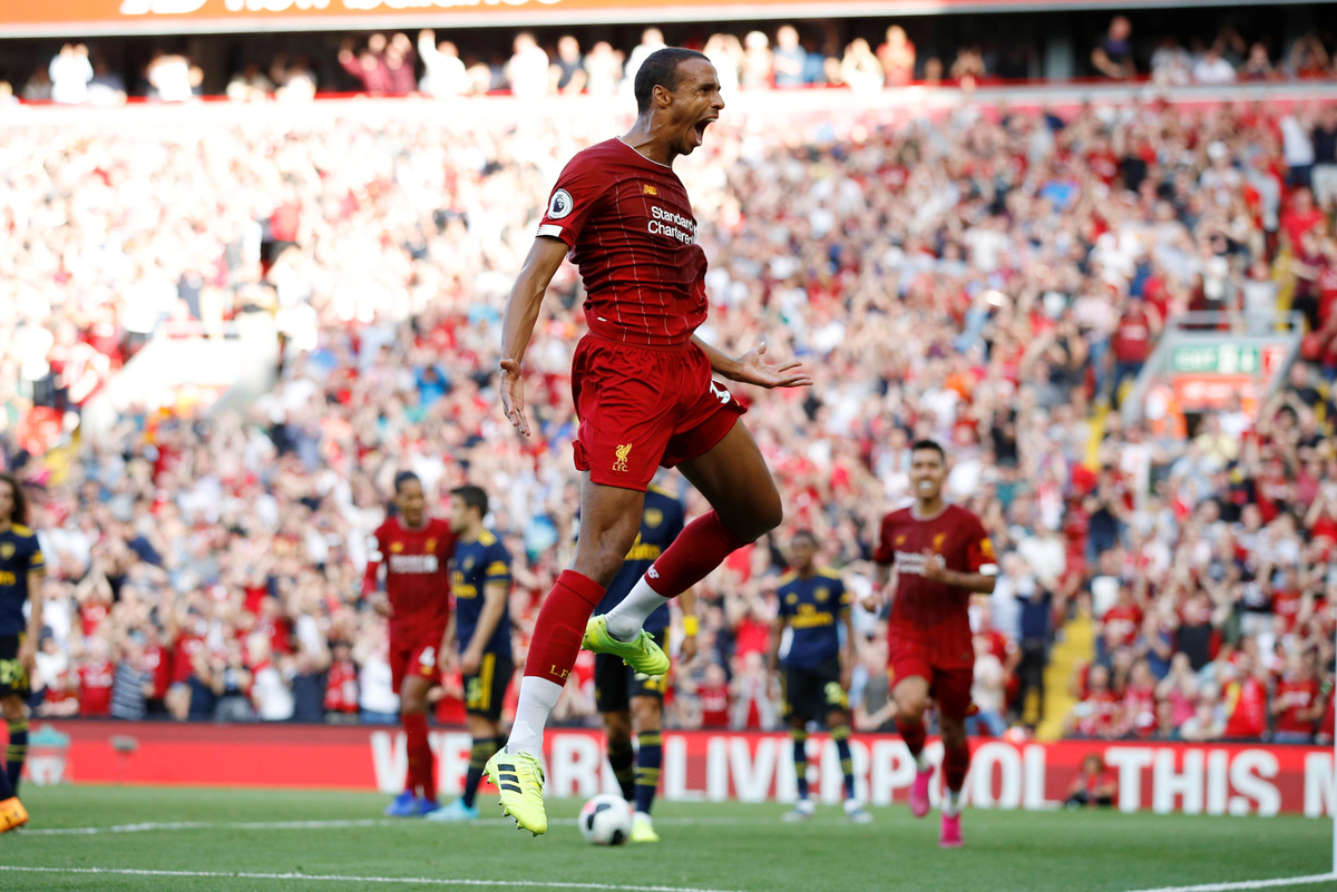 Liverpool couldn't find the killer pass to open up Arsenal's defence but four minutes before the break, they broke through with a simple set-piece -- defender Joel Matip rising to power home a header from a Trent Alexander-Arnold corner and ease the tension at Anfield.