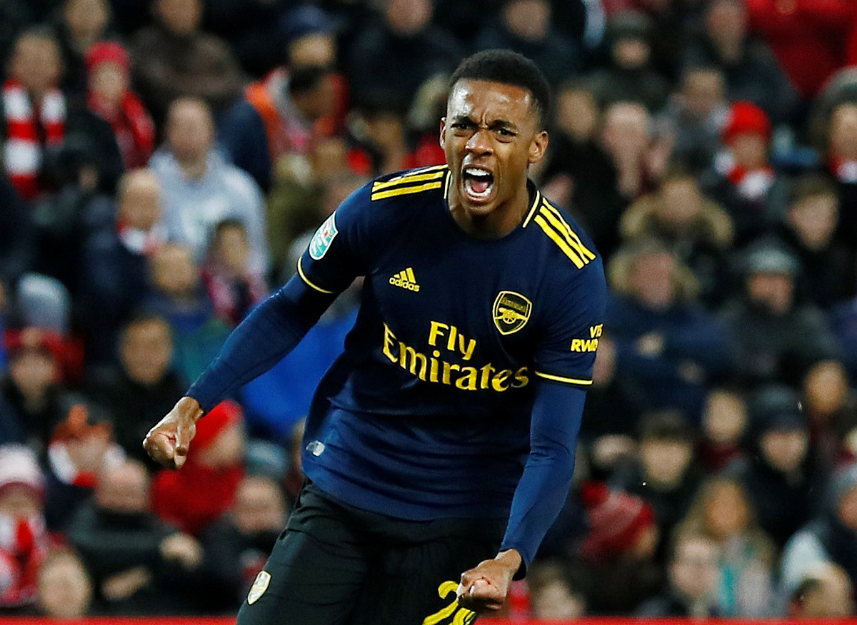 Soccer Football - Carabao Cup - Fourth Round - Liverpool v Arsenal - Anfield, Liverpool, Britain - October 30, 2019 Arsenal's Joe Willock celebrates scoring their fifth goal Action Images via Reuters/Jason Cairnduff