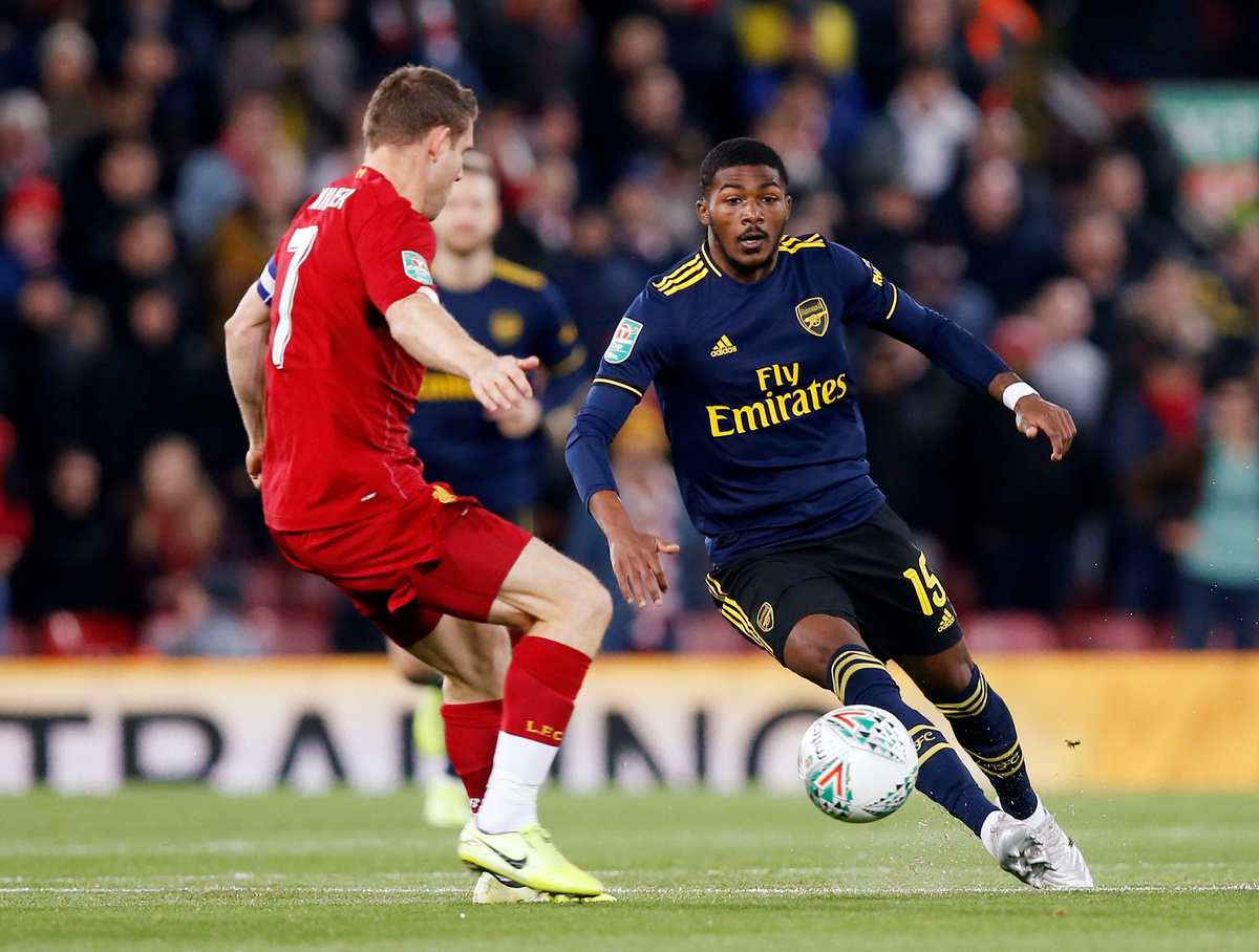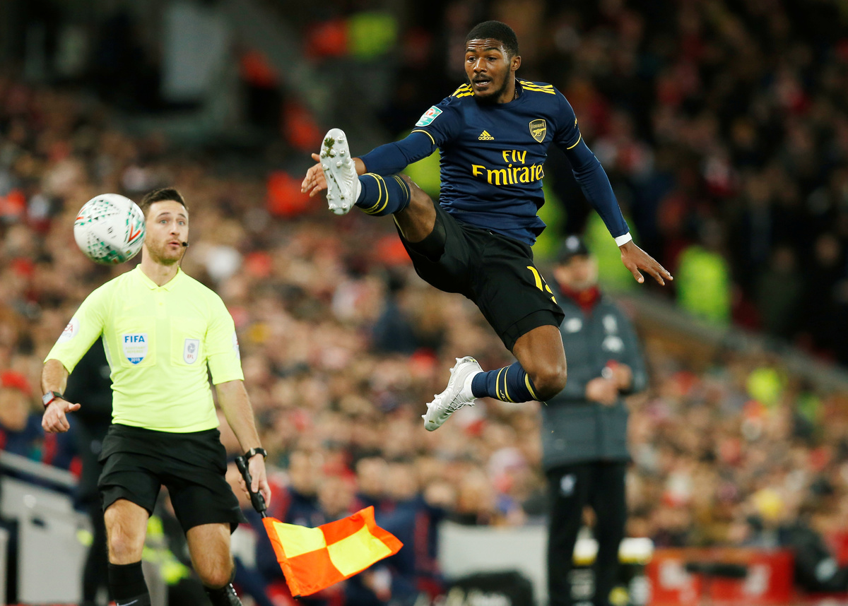 Soccer Football - Carabao Cup - Fourth Round - Liverpool v Arsenal - Anfield, Liverpool, Britain - October 30, 2019 Arsenal's Ainsley Maitland-Niles in action REUTERS/Andrew Yates